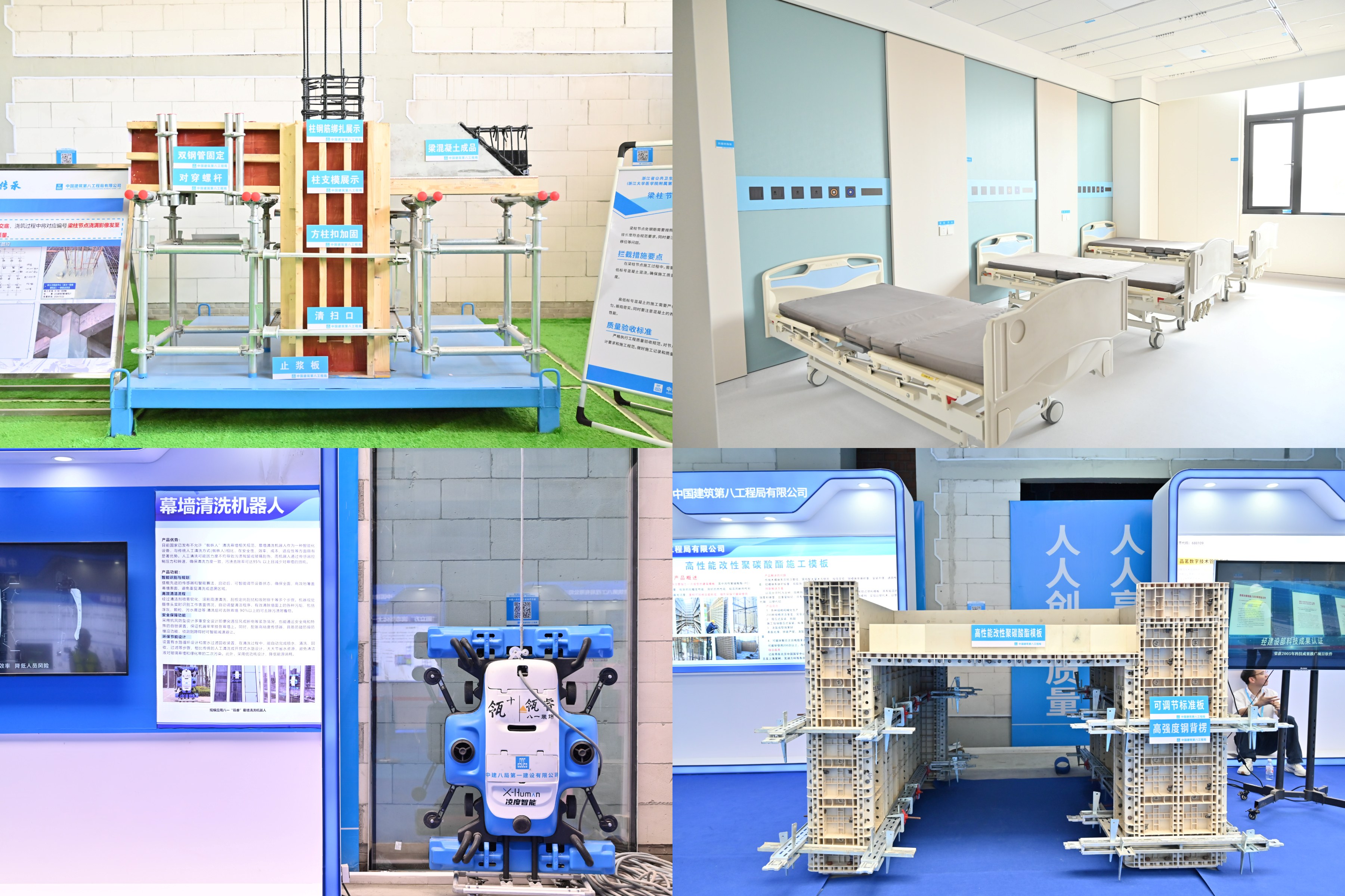 現(xiàn)場設(shè)“醫(yī)療好房子、質(zhì)量工藝樣板、質(zhì)量實(shí)體樣板、智慧工地”四大展區(qū),由具身智能機(jī)器人擔(dān)任講解員,展示中建八局在醫(yī)療建筑質(zhì)量管控與科技創(chuàng)新的成果?!搬t(yī)療好房子”展區(qū)聚焦“韌性醫(yī)療、院城融合、高效模塊、人文醫(yī)院、綠色低碳”五大核心,展示國際化三級甲等綜合性醫(yī)院與省級公共衛(wèi)生臨床中心一體化運(yùn)營新模式,以“平急兩用”雙軸并行框架,通過多舉措打造多功能醫(yī)療空間,滿足日常救治與應(yīng)急保障需求。質(zhì)量工藝樣板展區(qū)集中展示樁基礎(chǔ)、頂板后澆帶等關(guān)鍵工序樣板,明確全周期質(zhì)量管控標(biāo)準(zhǔn);質(zhì)量實(shí)體樣板展區(qū)依托實(shí)體結(jié)構(gòu),展示主體結(jié)構(gòu)、設(shè)備安裝、裝飾裝修等成型質(zhì)量。智慧工地展區(qū)呈現(xiàn)剪叉車安全平臺、智能施工升降機(jī)、無人塔吊模型、各類機(jī)器人等智能裝備,以科技創(chuàng)新注入“新質(zhì)生產(chǎn)力”。