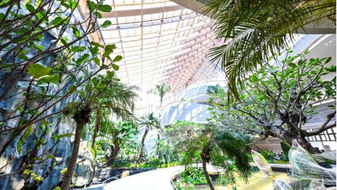 場(chǎng)館內(nèi)部打造約4000平方米的綠植生態(tài),其中,1000平方米溫室雨林館內(nèi)將展出珍稀的新加坡植物,通過(guò)傳統(tǒng)建筑語(yǔ)言的現(xiàn)代化構(gòu)建、內(nèi)部空間溫室化、生境營(yíng)建等綠色技術(shù)的綜合應(yīng)用,營(yíng)造一個(gè)低碳、舒適、健康的開放空間。