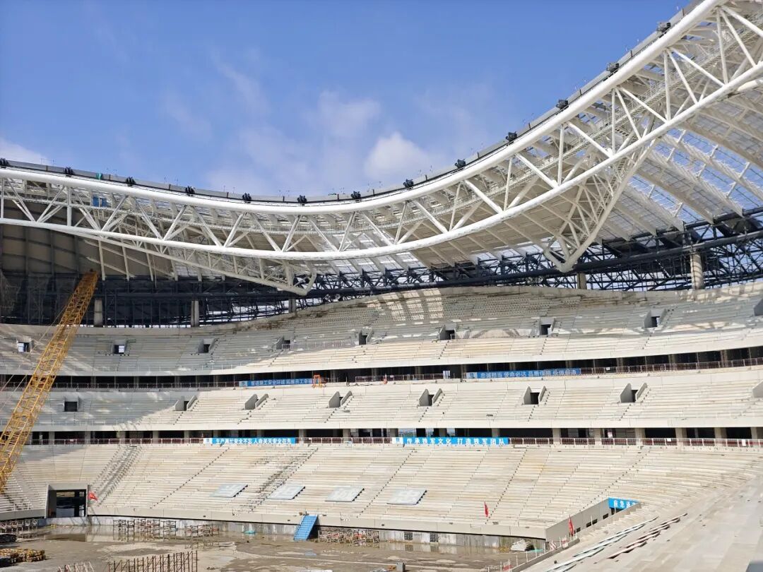 后續(xù)工程穩(wěn)步推進(jìn) 膜結(jié)構(gòu)施工將啟。目前,項(xiàng)目屋蓋鋼結(jié)構(gòu)已全部施工完成,屋面與幕墻結(jié)構(gòu)正同步推進(jìn),建筑輪廓如同 “黃河明珠” 般在黃河之畔熠熠生輝。下一步,施工團(tuán)隊(duì)將在看臺(tái)上安裝人體工學(xué)觀賽座椅,進(jìn)一步優(yōu)化觀賽舒適度。