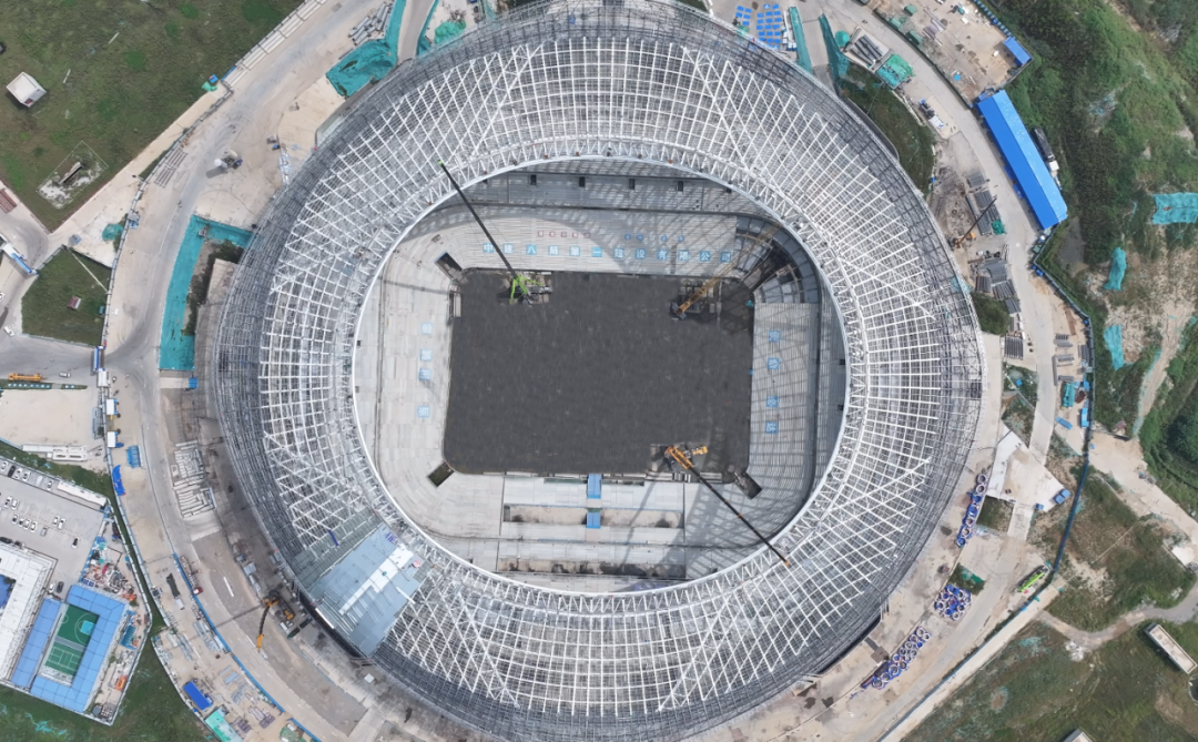 同時(shí),項(xiàng)目正全力推進(jìn)金屬屋面、防水層、隔音層等部位施工,即將進(jìn)入難度較大的膜結(jié)構(gòu)施工階段。屋蓋內(nèi)環(huán)將打造一圈 “透明屏障”,為足球場提供更優(yōu)的光照條件,進(jìn)一步提升觀賽體驗(yàn)。