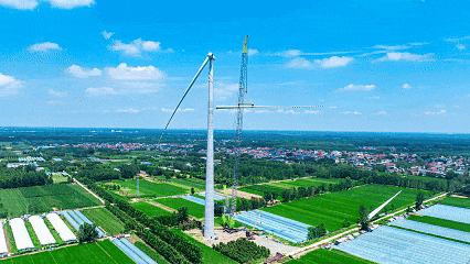 站在項目現(xiàn)場眺望,“風車”、田野、村落相映成趣,勾勒出人與自然和諧共生的綠色畫卷。該項目預計 12 月下旬開始并網(wǎng)發(fā)電,將滿足區(qū)域 40 萬戶用電需求,為區(qū)域高質(zhì)量發(fā)展提供綠色能源保障。