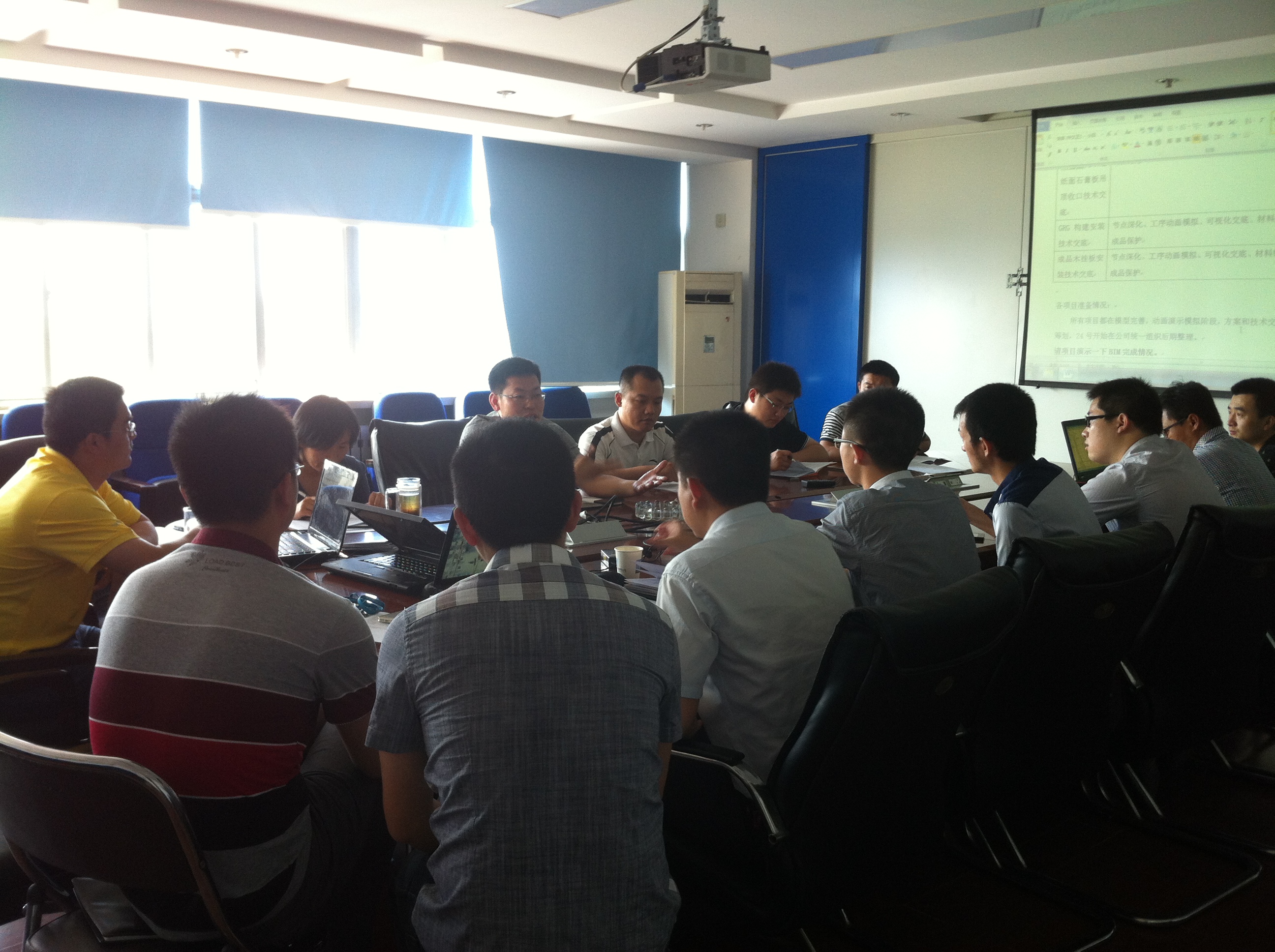 會(huì)議主要安排了下半年分公司技術(shù)口需做的主要工作,會(huì)議內(nèi)容包括:1、對(duì)一公司組織的《方案及交底BIM應(yīng)用計(jì)劃》大賽的準(zhǔn)備情況演示及分工安排情況。2、公司對(duì)技術(shù)復(fù)核的要求。3、裝飾分公司編制裝飾工程《質(zhì)量通病防治手冊(cè)》和《節(jié)點(diǎn)圖集》的分工和編制要求。4、目前創(chuàng)優(yōu)項(xiàng)目的準(zhǔn)備情況。5、項(xiàng)目的雙優(yōu)化情況。6、施工組織設(shè)計(jì)和方案編制。7、幕墻工程創(chuàng)優(yōu)做法收集。8、項(xiàng)目完工總結(jié)交流。9、2014版技術(shù)質(zhì)量手冊(cè)培訓(xùn)。