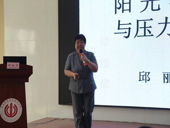 25日上午,由山東省委黨校教授邱麗莉教授為學員進行為期半天的《陽光心態(tài)》授課。邱教授授課幽默而生動,結合時事新聞向大家闡述了保持陽光心態(tài)的重要性,并且傳授了多種疏解壓力的方法。