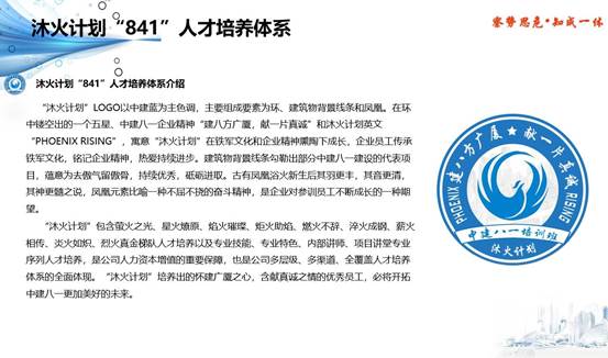 人力資源部副經(jīng)理何西謙對“沐火計劃”841人才培養(yǎng)體系進(jìn)行宣貫,分享四點心得:一是把工作當(dāng)成事業(yè),增強(qiáng)個人責(zé)任心和使命感;二是項目班子、生產(chǎn)經(jīng)理等人要有補(bǔ)位意識,項目的完美履約離不開每一個人的努力;三是提升格局,提高站位,以“高一級”的標(biāo)準(zhǔn)要求自己,為公司人才儲備積蓄力量;四是善始善終,保持定力,精準(zhǔn)執(zhí)行。同時也希望大家是要吸收本次培訓(xùn)課程,利用好項目講堂等,將優(yōu)秀經(jīng)驗傳遞到項目一線。