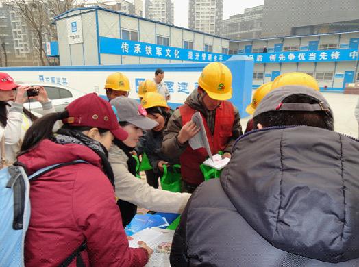 雷鋒日當(dāng)天,由法制日報(bào)社副總編輯陳晶晶帶隊(duì)組成的“學(xué)雷鋒、樹新風(fēng)”法制宣傳小組來到望京SOHO項(xiàng)目部采訪參觀,并與項(xiàng)目管理人員及工人交流雷鋒精神與法律知識。