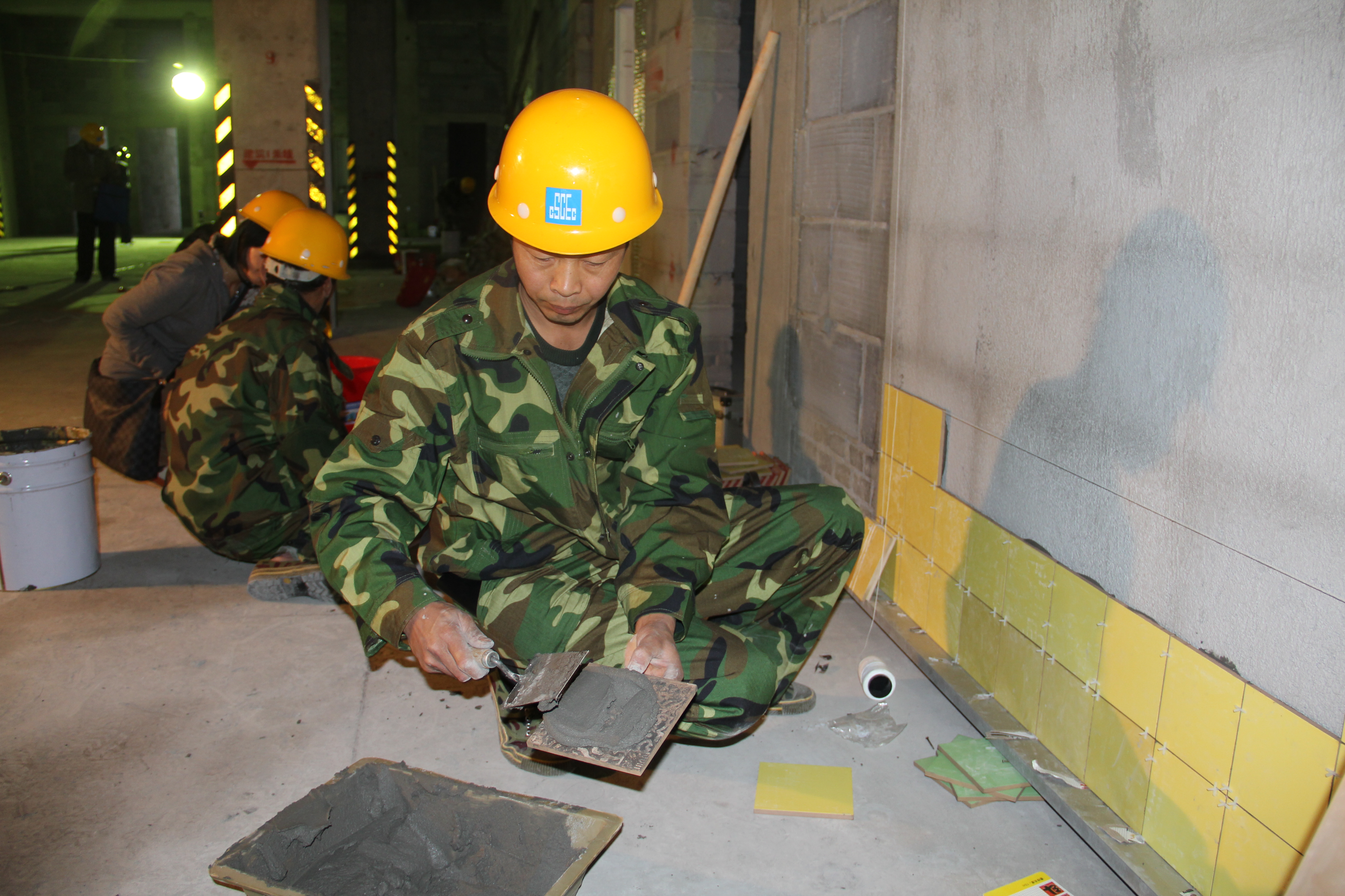 寧總首先致開幕詞,裁判員代表、勞務工人代表分別進行了宣誓。上午9時整,公司工會辦公室副主任畢延寶宣布比賽正式開始。本次比賽分為理論知識考試和技能實操比賽,比賽工種包括砌筑工、鑲貼工。在作業(yè)比賽中,參賽的勞務工人紛紛展示了各自精湛的技藝,令在場的觀摩人員連聲稱贊,各比賽團隊為充分展現(xiàn)自身實力,均拿出了“看家本領”,技能比賽進行得十分激烈。
