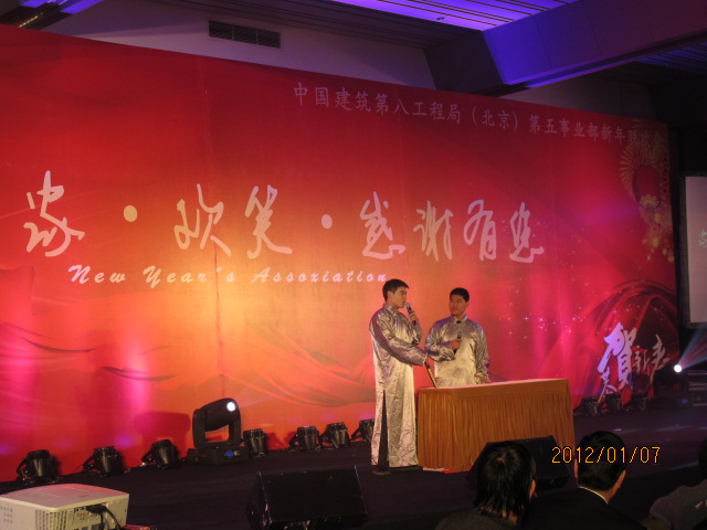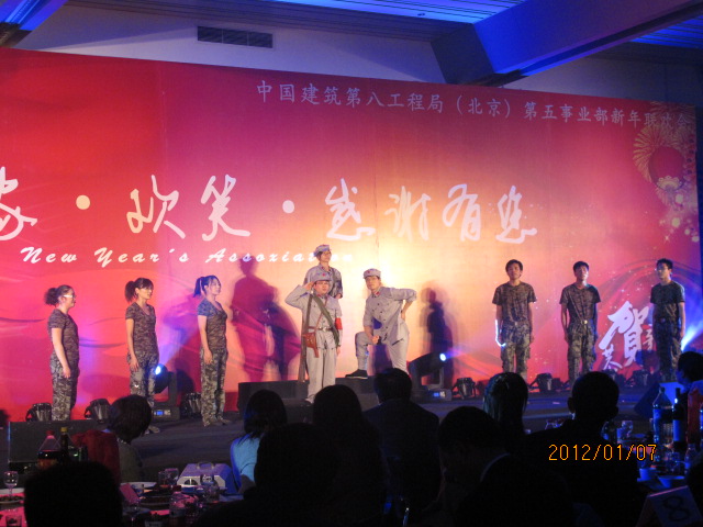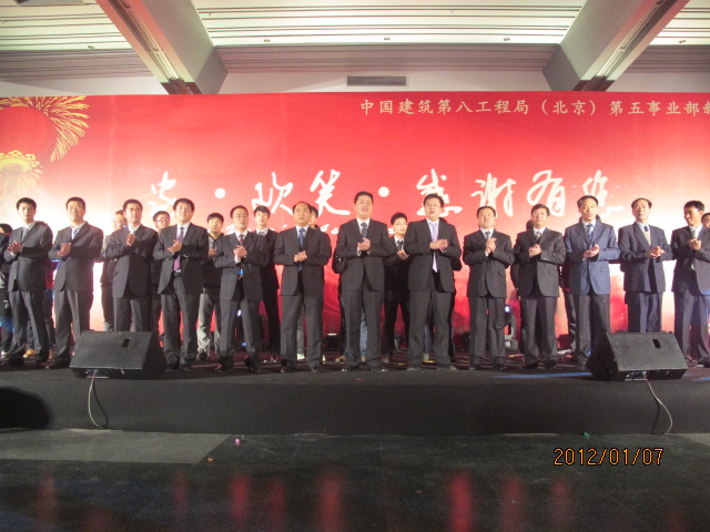 窗外飛雪迎春到,堂內(nèi)歡歌賀新年。2012年元月7日,在北京蟹島度假村宴會(huì)大廳,北京分公司主題為“家 ? 歡笑 ? 感謝有您”的迎新春團(tuán)拜會(huì)隆重舉行。局北京辦事處黨委書記楊宏選、總經(jīng)濟(jì)師郭慶林、總工程師李勝松、副主任楊振縣、一公司工會(huì)主席徐偉、副總經(jīng)理劉鵬、他兄弟事業(yè)部主要領(lǐng)導(dǎo)、北京分公司全體員工及其以及在建工程的業(yè)主、監(jiān)理、咨詢、分供商等相關(guān)單位代表等共計(jì)400余人參加了晚會(huì),共同迎接即將到來的龍年新春佳節(jié)。
