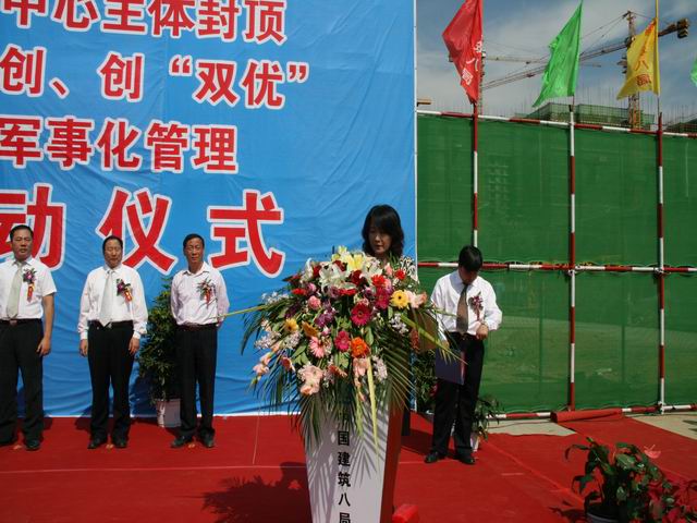 儀式上,青島市建管局副局長孫維民、公司黨委書記許紅、青島市李滄區(qū)建設(shè)局局長劉波等領(lǐng)導(dǎo)分別為中建八局項(xiàng)目黨員先鋒號(hào)、工人先鋒號(hào)、青年文明號(hào)授旗,并為準(zhǔn)軍事化管理項(xiàng)目及效能監(jiān)察重點(diǎn)工程揭牌。青島市建管局副局長對八局在李滄萬達(dá)廣場項(xiàng)目建設(shè)中取得的成績及此次活動(dòng)給予了充分肯定,他指出李滄萬達(dá)廣場項(xiàng)目是青島市重點(diǎn)項(xiàng)目,這一工程對樹立城市形象、提高城市品位、改善李滄區(qū)商業(yè)環(huán)境、促進(jìn)李滄區(qū)社會(huì)經(jīng)濟(jì)發(fā)展具有重要意義。高質(zhì)量、高水平、高效率地完成這一施工任務(wù),是對施工單位的一次重大考驗(yàn)。中建八局是一支有著優(yōu)良傳統(tǒng)的中國建筑“國家隊(duì)”,在南征北戰(zhàn),報(bào)效祖國、奉獻(xiàn)社會(huì)的建設(shè)征程上曾經(jīng)做出了許多驕人的業(yè)績,形成了“特別能吃苦,特別能戰(zhàn)斗,特別能奉獻(xiàn)”的鐵軍精神,希望八局在李滄萬達(dá)廣場工程建設(shè)中,繼續(xù)保持和發(fā)揚(yáng)鐵軍傳統(tǒng),充分發(fā)揮黨員的先鋒模范作用、充分發(fā)揮工人階級的主人翁精神,充分發(fā)揮青年的生力軍作用,以一流的速度、一流的質(zhì)量把工程建設(shè)成精品工程,安全工程、滿意工程和廉潔工程!
