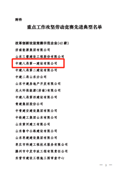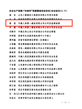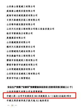 正值建黨百年之際,公司在山東省住建系統(tǒng)重點工作攻堅勞動競賽先進典型選樹活動中斬獲多項榮譽,包括山東省住建系統(tǒng)改革創(chuàng)新攻堅競賽示范企業(yè)(一公司)、山東省住建系統(tǒng)重點工程攻堅勞動競賽示范企業(yè)(一公司)、山東省住建系統(tǒng)重點工程攻堅勞動競賽示范項目部(魯南高鐵、農(nóng)業(yè)工程學(xué)院淄博校區(qū))、山東省住建系統(tǒng)安全生產(chǎn)競賽(“安康杯”競賽暨查保促活動)優(yōu)勝單位(一公司)、山東省住建系統(tǒng)安全生產(chǎn)競賽(“安康杯”競賽暨查保促活動)優(yōu)勝項目部(平安360)、山東省住建系統(tǒng)勞模和工匠人才創(chuàng)新工作室(趙忠楊超高層高效建造創(chuàng)新工作室)等6項集體榮譽和山東省住建系統(tǒng)改革創(chuàng)新標兵(1人)、山東省住建系統(tǒng)重點工程攻堅勞動競賽標兵(2人)、山東省住建系統(tǒng)安全生產(chǎn)競賽(“安康杯”競賽暨查保促活動)安全標兵(1人)等3項個人榮譽。