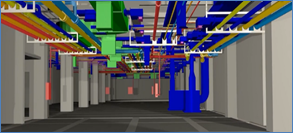 項目地下階段施工時考慮到機(jī)電預(yù)留預(yù)埋、地鐵聯(lián)絡(luò)線接駁等需要深化的部位,利用BIM模型對復(fù)雜節(jié)點(diǎn)進(jìn)行放樣和深化,可以指導(dǎo)現(xiàn)場施工。項目在機(jī)電深化過程中,利用BIM軟件進(jìn)行管線綜合布置和碰撞檢查,并生成碰撞報告,出具圖紙向業(yè)主設(shè)計部報審。