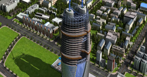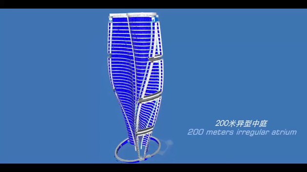 麗澤SOHO項目位于北京市豐臺區(qū)麗澤金融商務(wù)區(qū),由世界著名大師扎哈?哈迪德設(shè)計,地下4層,地上45層,建筑面積17.28萬平方米,總高度200米,地鐵14號線和16號線聯(lián)絡(luò)線在地下交匯。它的設(shè)計靈感源于DNA雙螺旋,流線型反對稱曲面猶如巨龍盤旋,魚鱗幕墻結(jié)構(gòu)復(fù)雜,施工難度高,異形中庭變曲率上升,高度堪稱世界之最。