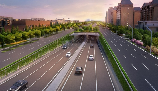 廣渠路東延(怡樂西路-東六環(huán)路) 全長7.664km,是連接北京中心城區(qū)與通州城市副中心行政辦公區(qū)的重要通道。廣渠路東延道路規(guī)劃為城市主干路,雙向六車道,按地面、地下兩套系統(tǒng)設(shè)置,地面道路設(shè)計速度為60km/h,地下道路設(shè)計速度80km/h,配套建設(shè)綜合管廊及雨污分流排水系統(tǒng)。