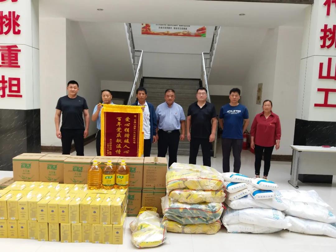 正威泰安金屬新材料項目人員為項目所在地岱岳區(qū)泉上村的老黨員們送去米面油、牛奶等慰問品,并應(yīng)邀參加村委組織的慶祝建黨100周年茶話會。對項目部為村里提供大型機械、修筑排水溝等一年來的援助,村支書周長偉表示衷心感謝,并贈送了錦旗。