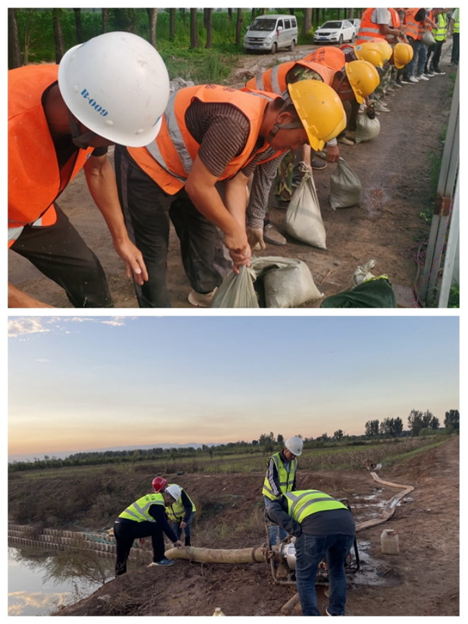 10月10日,連日降雨導(dǎo)致太原文源路生態(tài)明渠漫堤,華北公司山西文源路西延項(xiàng)目迅速選派20余人,調(diào)集抽水泵3臺,奔赴生態(tài)明渠抗汛前線,奮戰(zhàn)3個小時,填裝沙袋200余個。同時,項(xiàng)目還深入周邊村社進(jìn)行防汛宣傳,排查危舊房屋等隱患,重豎倒塌的信號塔,處理坍塌堵塞路面的路障,保障了周邊群眾出行安全。
